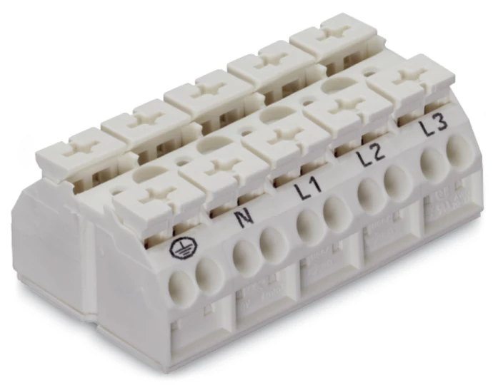 Blok zasilający 5-torowy biały nadruk PE-N-L1-L2-L3 862-1605/999-950 /200szt./