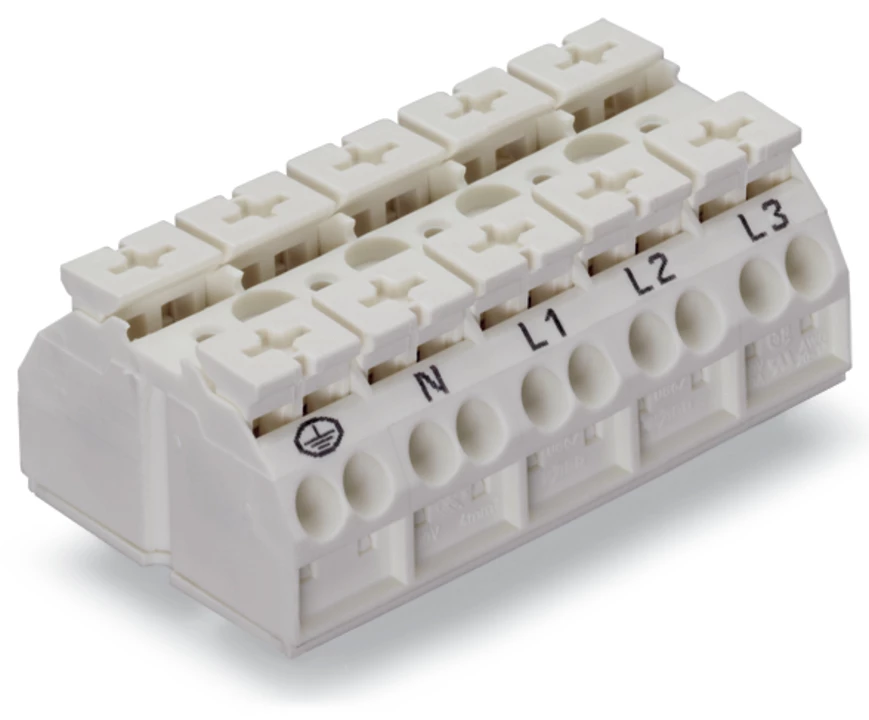Blok zasilający 5-torowy biały nadruk PE-N-L1-L2-L3 862-9615 /200szt./