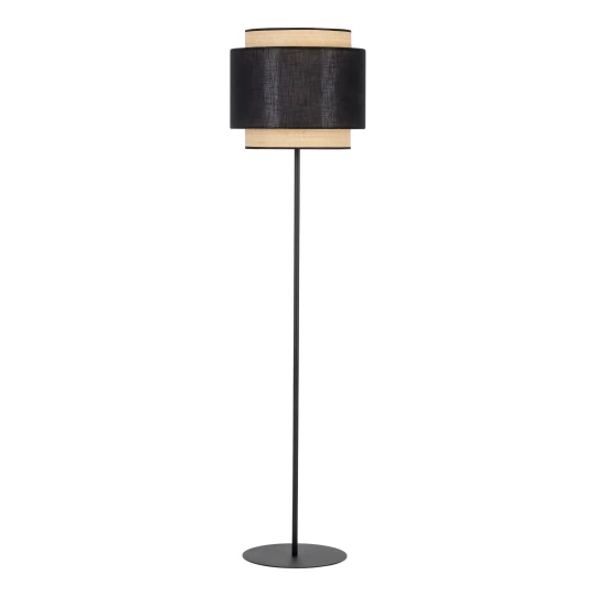 BOHO CZARNY RATTAN OPRAWA PODŁOGOWA 1 E27/ 15W STAL LAKIEROWANA PRZEWÓD RAFIA/ TKANINA