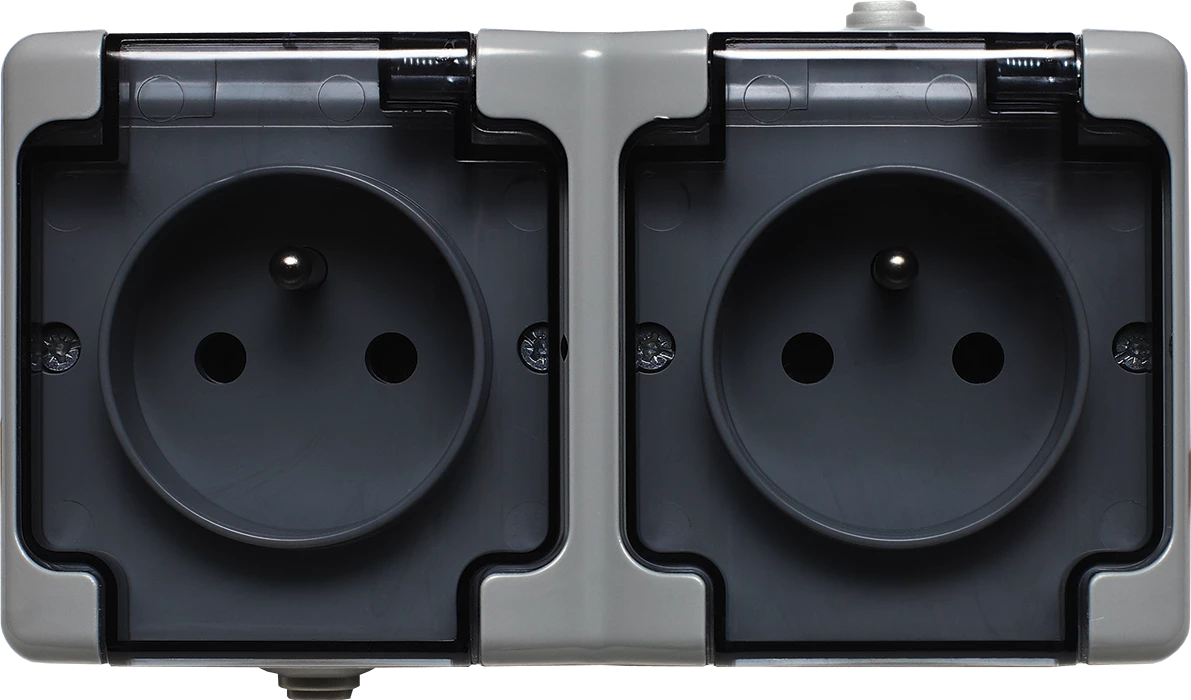 BRYZA Gniazdo hermetyczne podwójne z/u IP54 z klapką dymną szare 180036