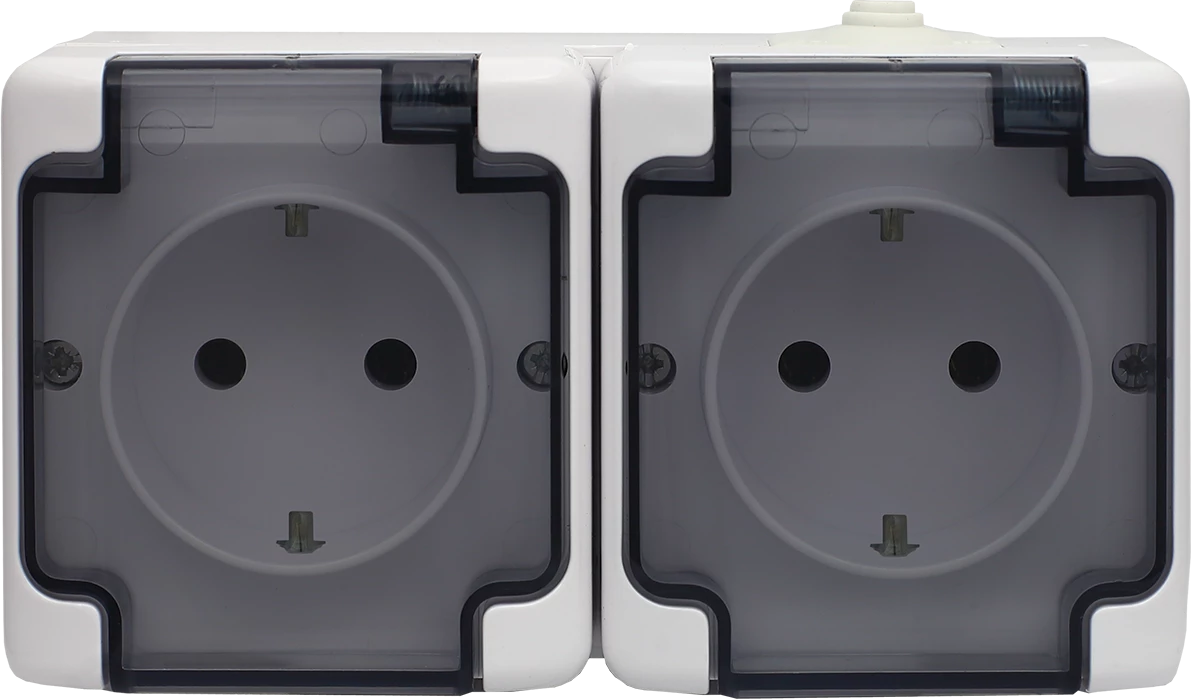 BRYZA Gniazdo hermetyczne podwójne z/u Schuko IP54 z klapką dymną białe 181442