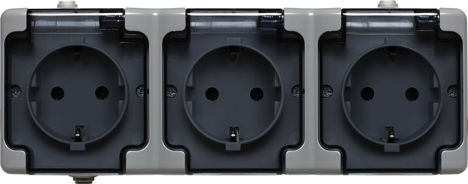 Simon Aquarius Gniazdo hermetyczne potrójne z/u IP54 z przesłona torów i klapką transparentną AQGZ1-3Z/11