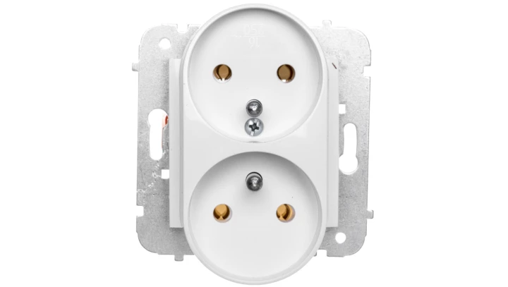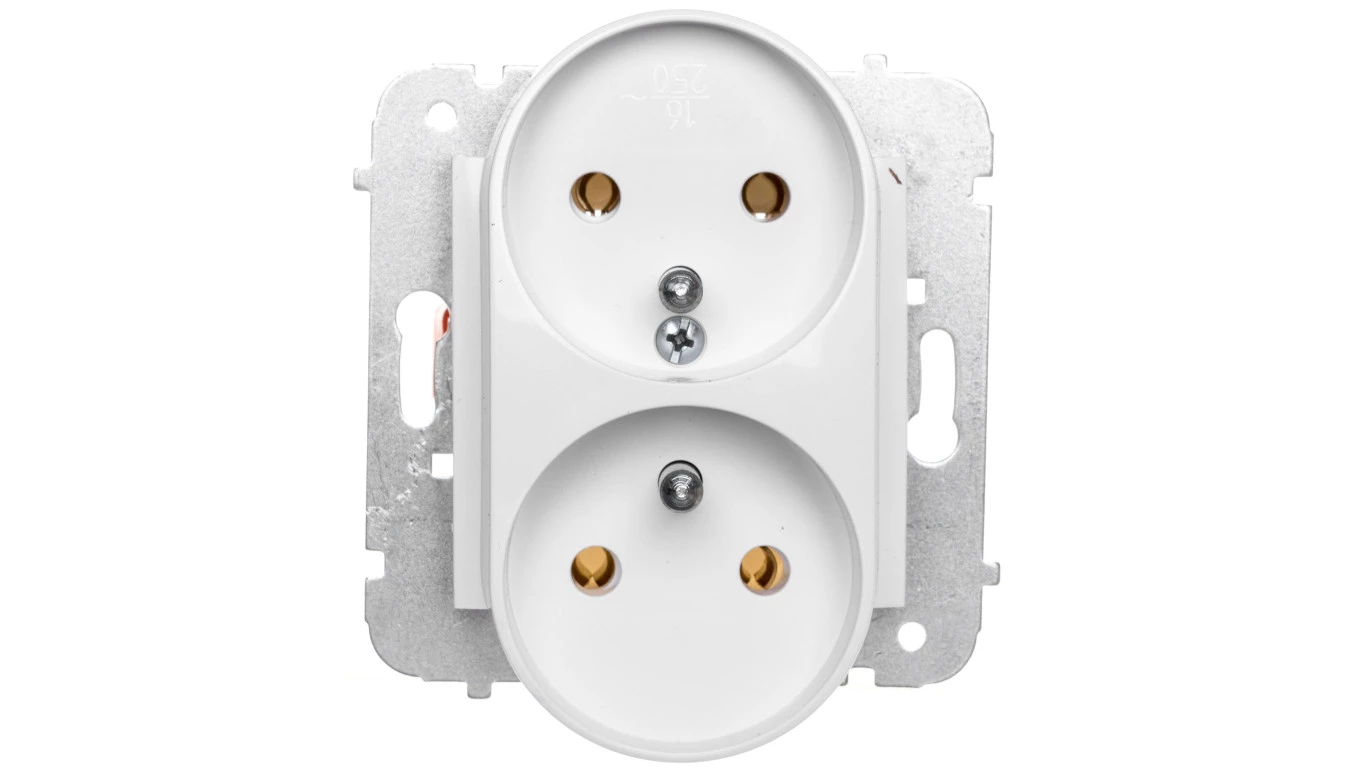 CARLA MODUŁ BIAŁY GNIAZDO 2X Z/U ZACISKI ŚRUBOWE 16A 250V