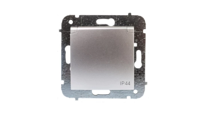CARLA MODUŁ SREBRNY GNIAZDO 1X Z/U Z KLAPKĄ IP44 Z PRZESŁONAMI ZACISKI ŚRUBOWE 16A 230V