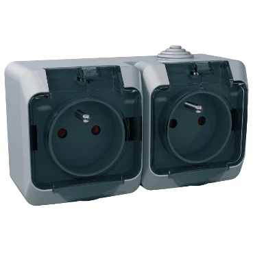 FORIX 44 SZARY GNIAZDO NT 2X Z/U IP44 Z PRZESŁONAMI ZACISKI ŚRUBOWE 16A 250V