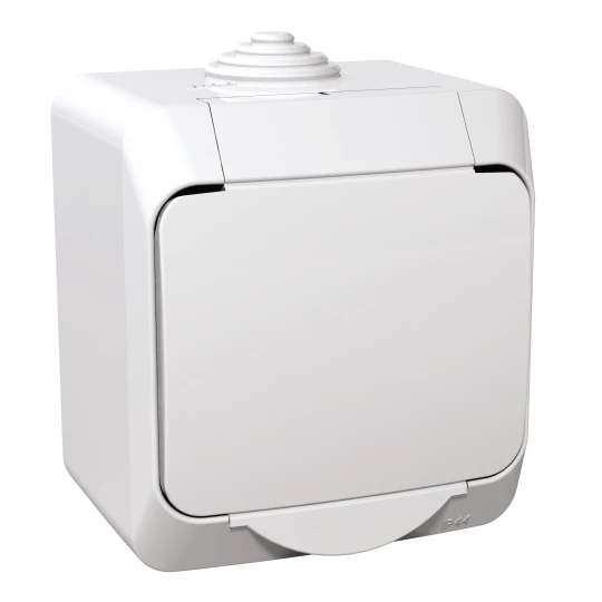 Simon Aquarius Gniazdo hermetyczne pojedyncze z/u IP54 z przesłoną torów i klapką pełną białe AQGZ1z/11