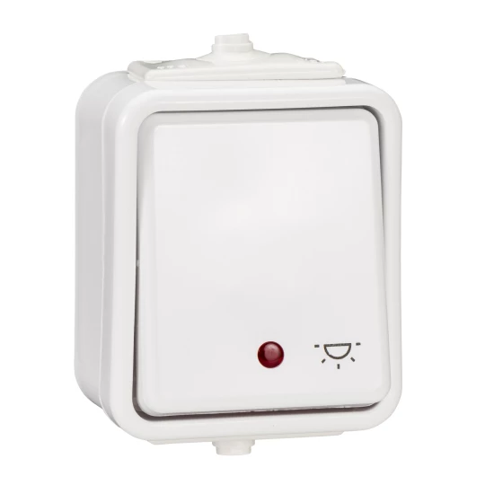 Cedar Przycisk hermetyczny IP44 światło z podświetleniem 10A biały IP44 WNt-102CS WNT102CS01