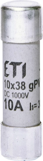 Wkładka cylindryczna PV topikowa CH10x38 gPV 10A/1000V DC 002625075 ETI o numerze katalogowym 002625075 w kategorii Wkładki bezpiecznikowe cylindryczne 10x38, Wkładki bezpiecznikowe cylindryczne. Produkt wyprodukowany przez markę ETI.