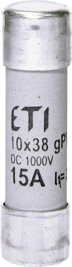 Wkładka cylindryczna PV topikowa CH10x38 gPV 15A/1000V DC 002625080 ETI o numerze katalogowym 002625080 w kategorii Wkładki bezpiecznikowe cylindryczne 10x38, Wkładki bezpiecznikowe cylindryczne. Produkt wyprodukowany przez markę ETI.