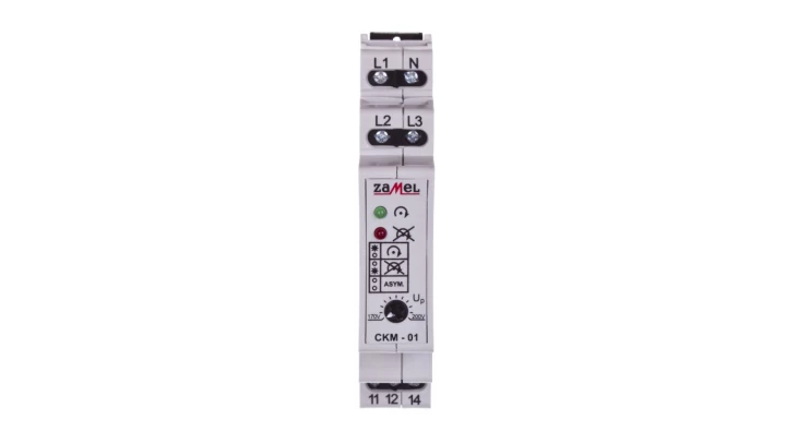 Czujnik kolejności FAZ 230/400V AC Typ: CKM-01 o numerze katalogowym EXT10000019 w kategorii Przekaźniki kontrolne, Przekaźniki. Produkt wyprodukowany przez markę ZAMEL, seria EXTA.