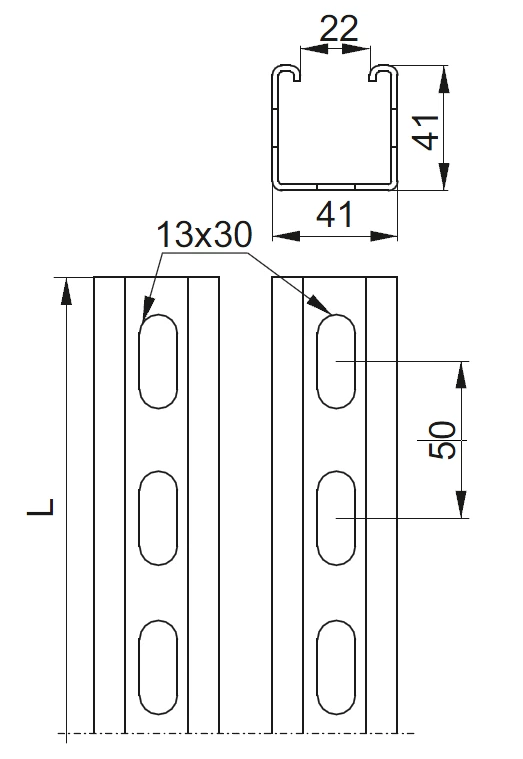 Ceownik montażowy CMP41H41/3MC o numerze katalogowym 851132 w kategorii Konstrukcje PV, Konstrukcje montażowe. Produkt wyprodukowany przez markę BAKS, seria CMP.