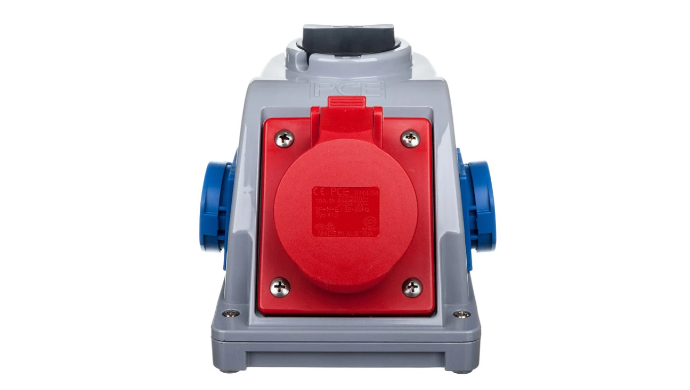 Nowa seria gniazd z wyłącznikiem " Combo-Pol" 16A 400V 3P+Z+N, gniazdo 2x230V, wył. 0-1 o numerze katalogowym 96061542W w kategorii Gniazda stałe, Gniazda siłowe. Produkt wyprodukowany przez markę PCE, seria COMBO-POL.