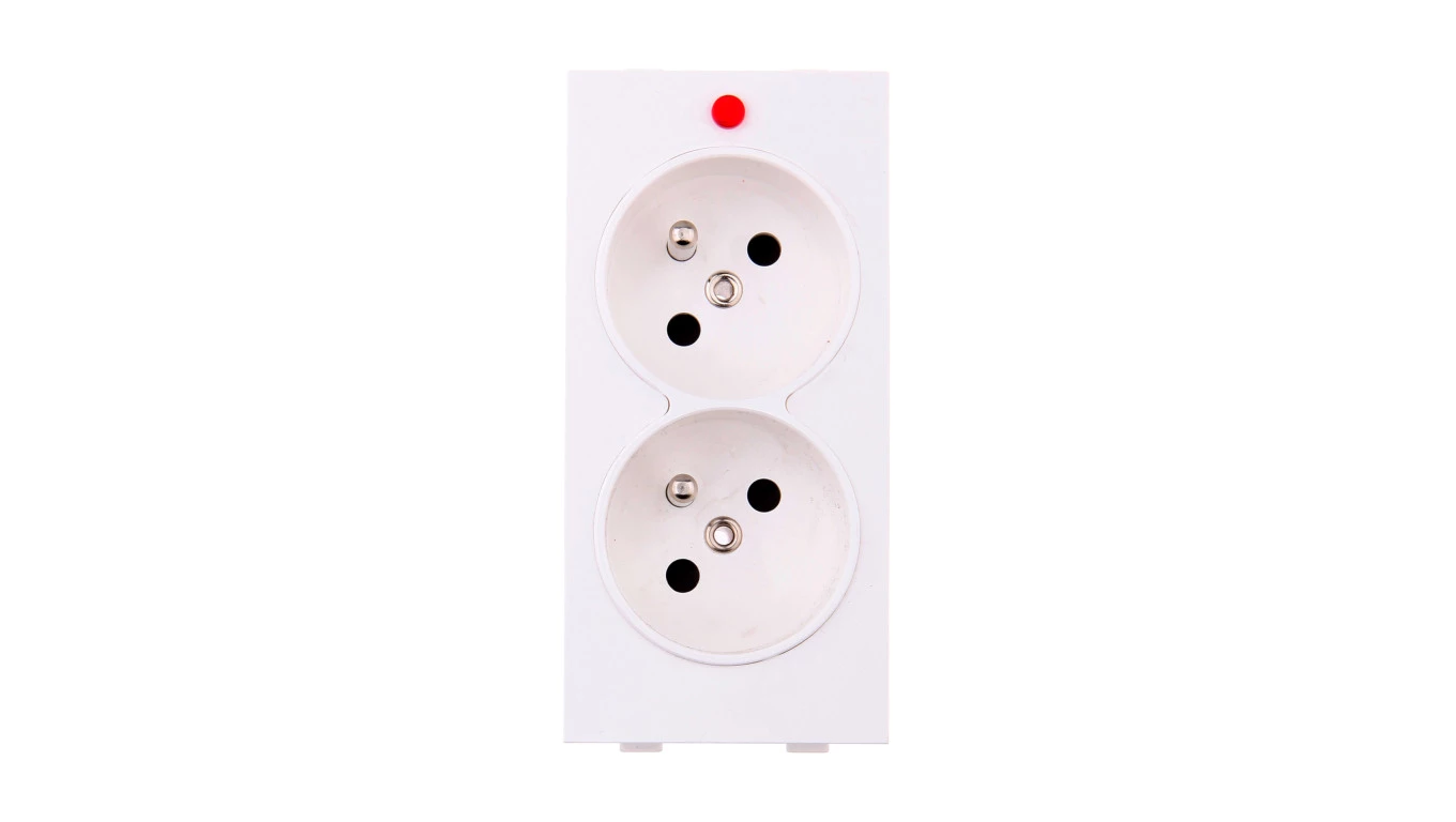 Gniazdo podwójne CIMA z uziemieniem 2-krotna 230V~ 16A, biały Connect o numerze katalogowym S2/9 w kategorii Gniazda systemu 45x45, Osprzęt biurowy, akcesoria. Produkt wyprodukowany przez markę KONTAKT-SIMON, seria CONNECT.