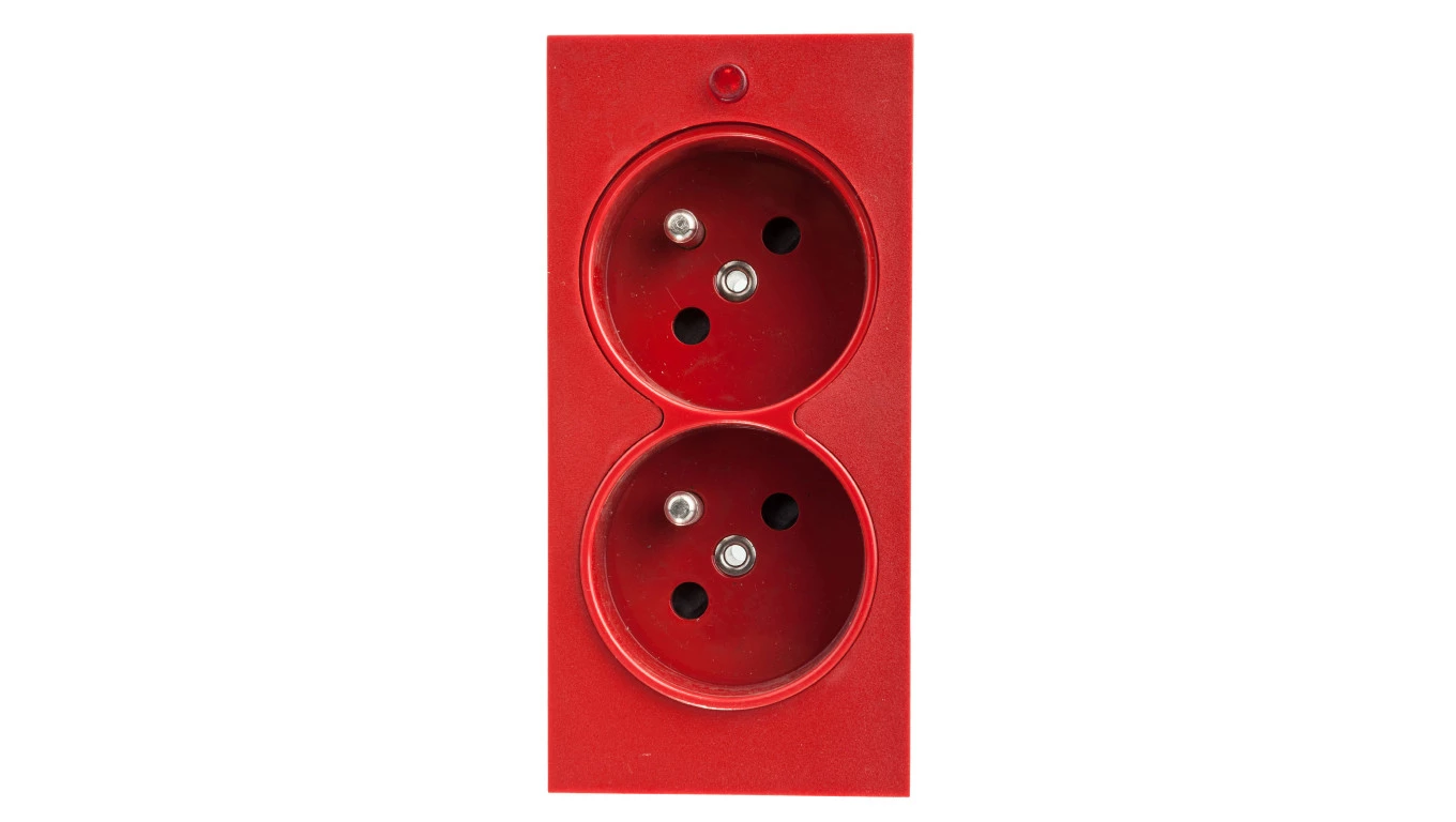 Gniazdo podwójne CIMA z uziemieniem 2-krotna 230V~ 16A, czerwony Connect o numerze katalogowym S2/6 w kategorii Gniazda systemu 45x45, Osprzęt biurowy, akcesoria. Produkt wyprodukowany przez markę KONTAKT-SIMON, seria CONNECT.