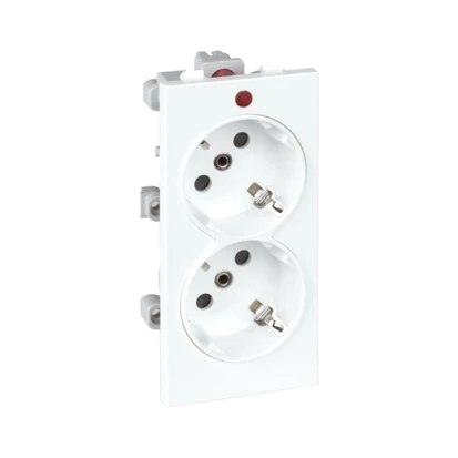 Gniazdo podwójne CIMA schuko 2x230V~ 16A, czysta biel, CONNECT o numerze katalogowym S1/9 w kategorii Gniazda systemu 45x45, Osprzęt biurowy, akcesoria. Produkt wyprodukowany przez markę KONTAKT-SIMON, seria CONNECT.
