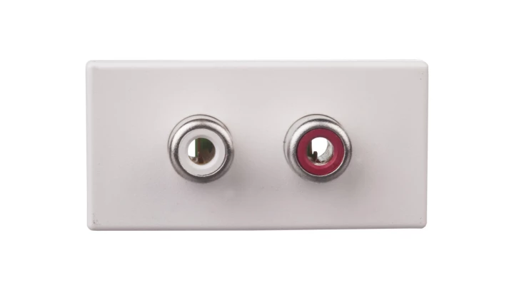 Płytka K45/2 złącz 2-krotna RCA (CINCH) 22,5x45mm + wkłady, zaciski śrubowe, biały o numerze katalogowym K101B/9 w kategorii Płytki modułowe systemu 45X45, Osprzęt biurowy, akcesoria. Produkt wyprodukowany przez markę KONTAKT-SIMON, seria CONNECT.