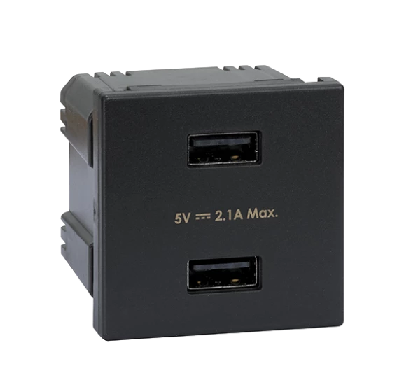 CONNECT M45 GRAFIT GNIAZDO - ŁADOWARKA 2M 2X USB 2.0 TYP A 2.1A 5V DC ZACISKI ŚRUBOWE