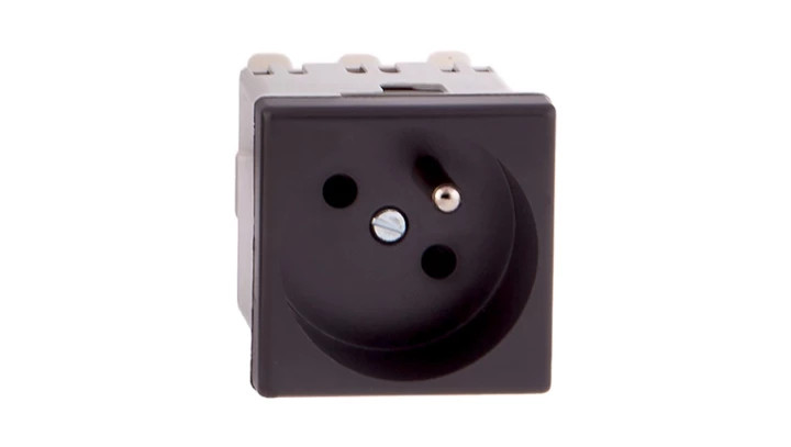 Gniazdo K45 z uziemieniem 16A/230V~, szybkozłączki, grafit Connect o numerze katalogowym K22/14 w kategorii Gniazda systemu 45x45, Osprzęt biurowy, akcesoria. Produkt wyprodukowany przez markę KONTAKT-SIMON, seria CONNECT.