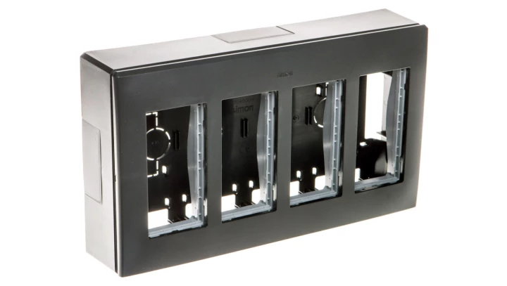 Obudowa natynkowa S500 4-modułowa, 8x K45, kompletna, szary grafit, SIMON500 o numerze katalogowym 51000004-038 w kategorii Gniazda systemu 45x45, Osprzęt biurowy, akcesoria. Produkt wyprodukowany przez markę KONTAKT-SIMON, seria SIMON 500.