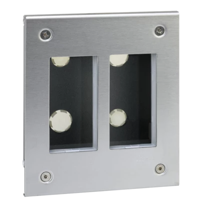 Obudowa podtynkowa S500 METAL 2-modułowa, 4x K45, kompletna, METAL o numerze katalogowym 51000112-036 w kategorii Gniazda systemu 45x45, Osprzęt biurowy, akcesoria. Produkt wyprodukowany przez markę KONTAKT-SIMON, seria CONNECT.