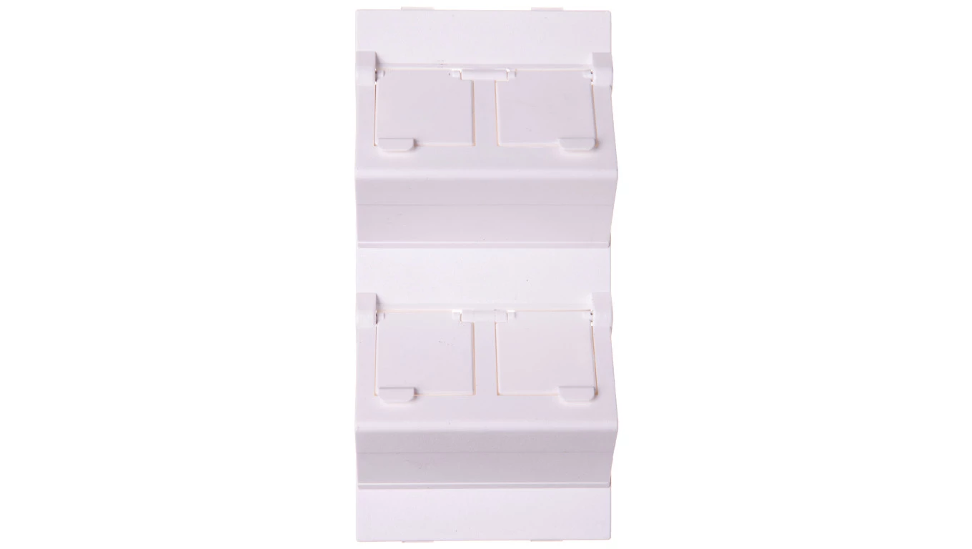 Płytka CIMA, 4x RJ z osłonami, skośna, do adapterów MD, czysta biel, CONNECT o numerze katalogowym S80C/9 w kategorii Płytki modułowe systemu 45X45, Osprzęt biurowy, akcesoria. Produkt wyprodukowany przez markę KONTAKT-SIMON, seria CONNECT.