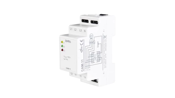 Cyfrowy czujnik asymetrii i spadku symetrycznego napięcia oraz zaniku fazy CAM-11 o numerze katalogowym   EXT10000268 w kategorii Przekaźniki>Przekaźniki kontrolne. Produkt wyprodukowany przez markę ZAMEL.