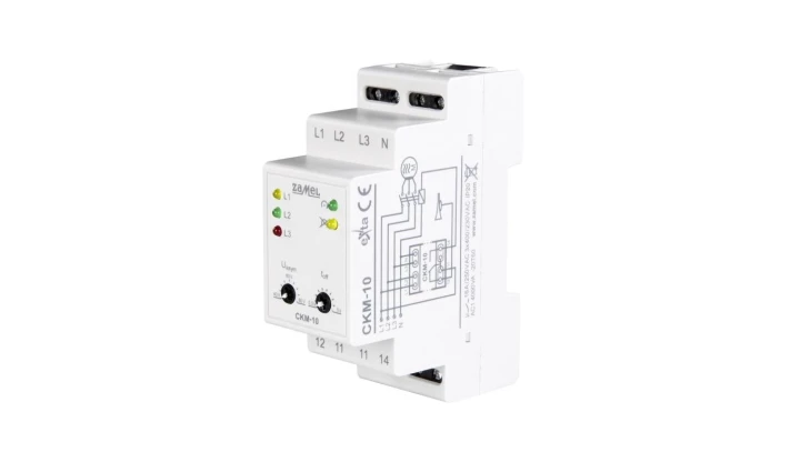 Cyfrowy czujnik kolejności faz i zaniku faz, 16A 2-mod. nastawa czasu i progu działania CKM-10 o numerze katalogowym   EXT10000266 w kategorii Przekaźniki>Przekaźniki kontrolne. Produkt wyprodukowany przez markę ZAMEL.