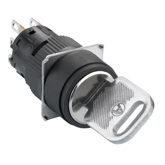 Czarny przełącznik okr. O 16, wystający kluczykowy 2-poz., 2OC XB6EAG221P
