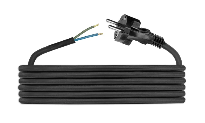 D.3511 CZARNY SZNUR PRZYŁĄCZENIOWY 5.0M GUMA H05RR-F 2X1.5 OKRĄGŁY WTYCZKA PROSTA