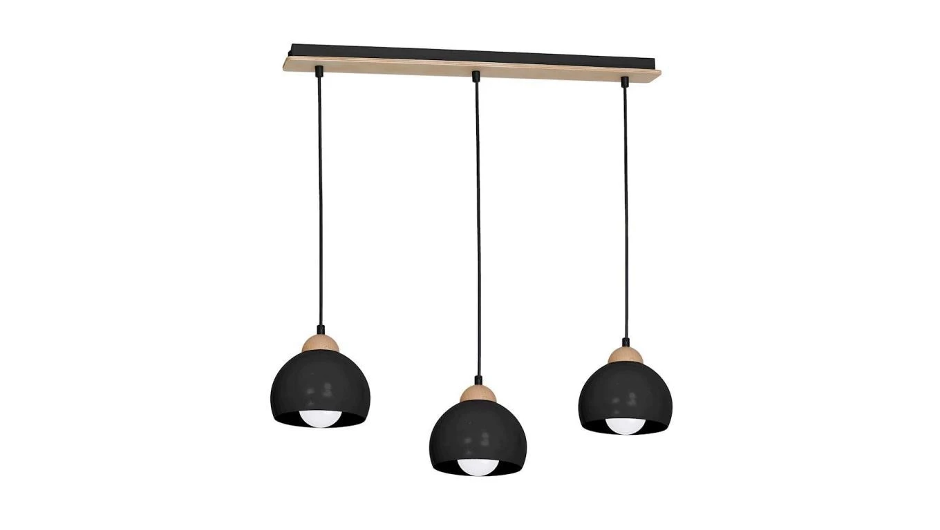 DAMA CZARNY/ DREWNIANY OPRAWA LAMPA WISZĄCA 3X E27 MAX 3X 60W IP20 METAL/ DREWNO