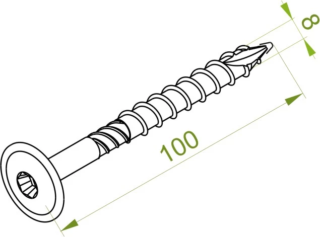 Wkręt do drewna DDW8x100 (1opakowanie=100sztuk) o numerze katalogowym 890810 w kategorii Konstrukcje PV, Konstrukcje montażowe. Produkt wyprodukowany przez markę BAKS, seria DDW.