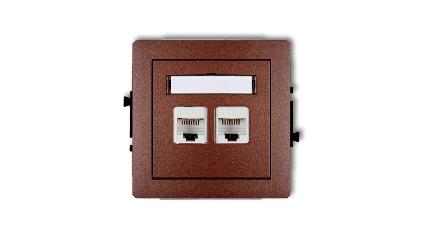 DECO Gniazda komputerowe podwójne 2xRJ45, kat. 6, ekranowane, 8-stykowy brązowy metalik 9DGK-6