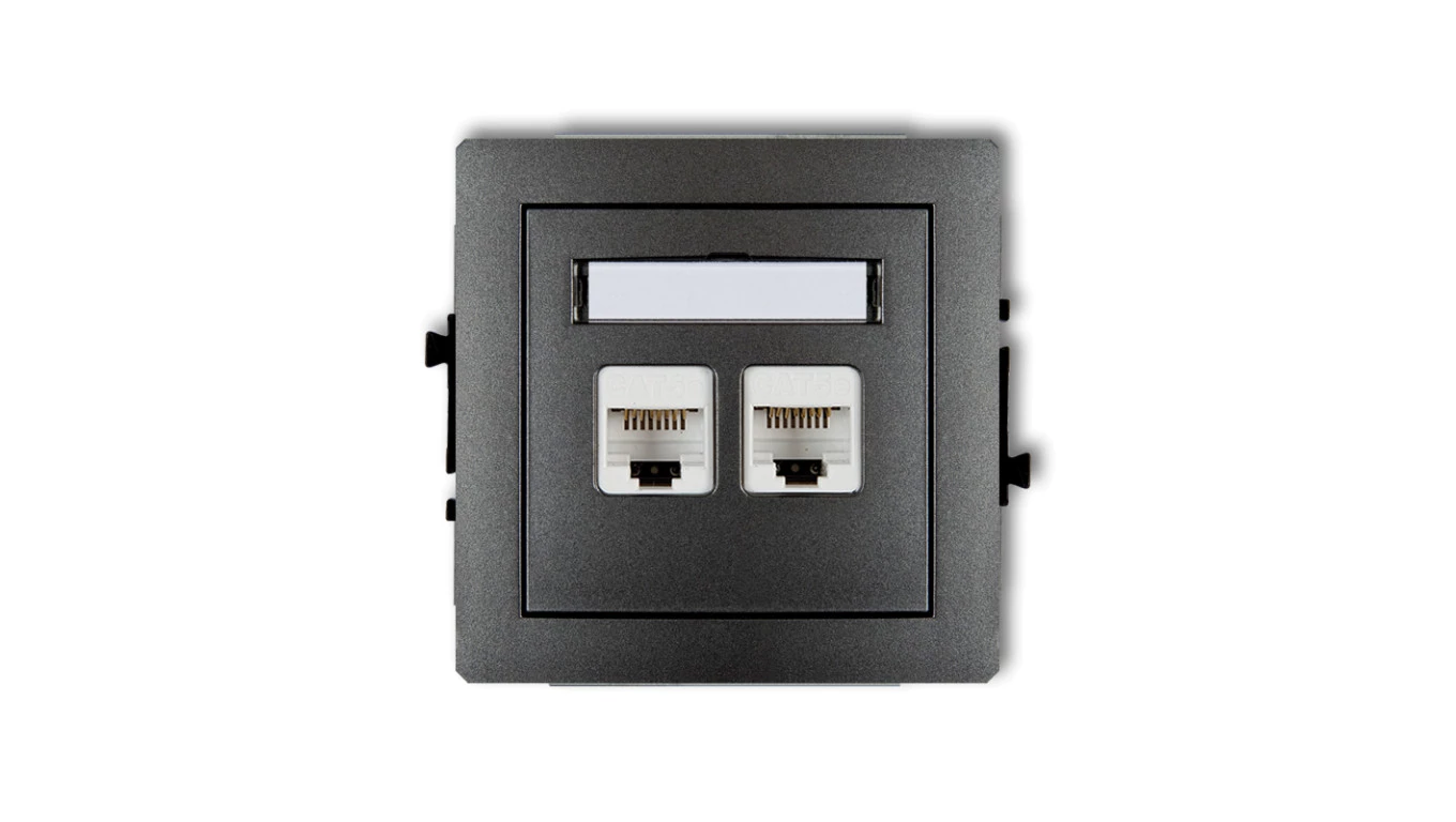 DECO Gniazda komputerowe podwójne 2xRJ45, kat. 6, ekranowane, 8-stykowy grafitowy 11DGK-6
