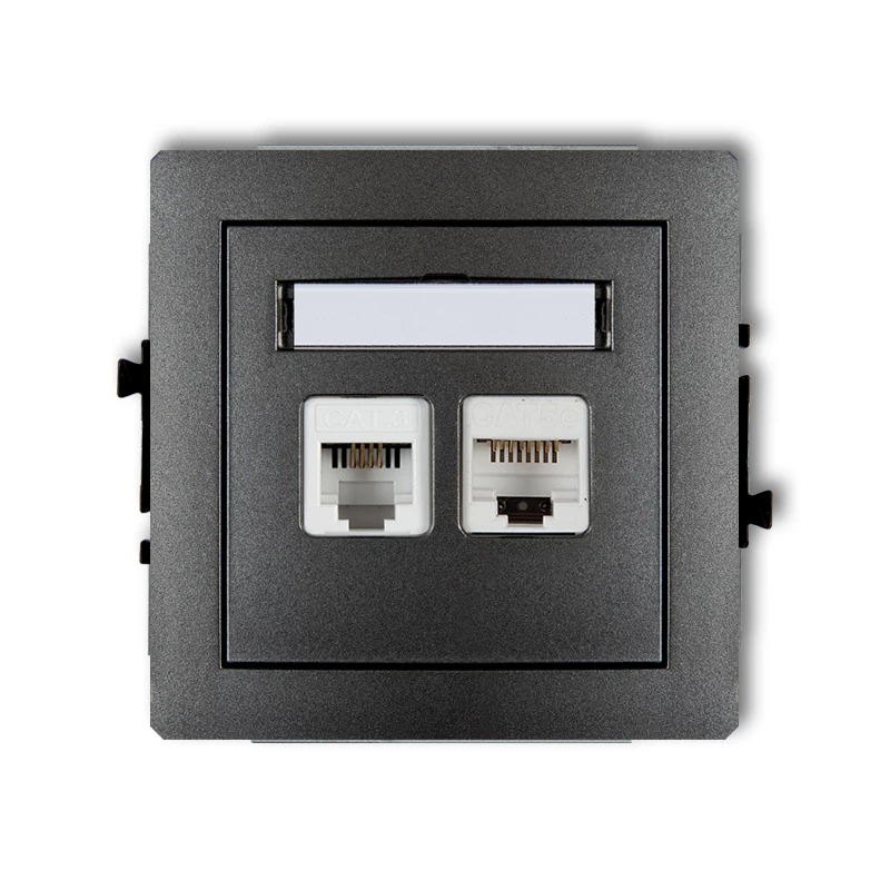 DECO Gniazda telefoniczne pojedyncze 1xRJ11 + komputerowego pojedynczego 1xRJ45, kat. 5e, 8-stykowy, beznarzędziowe grafitowy 11