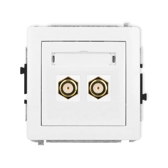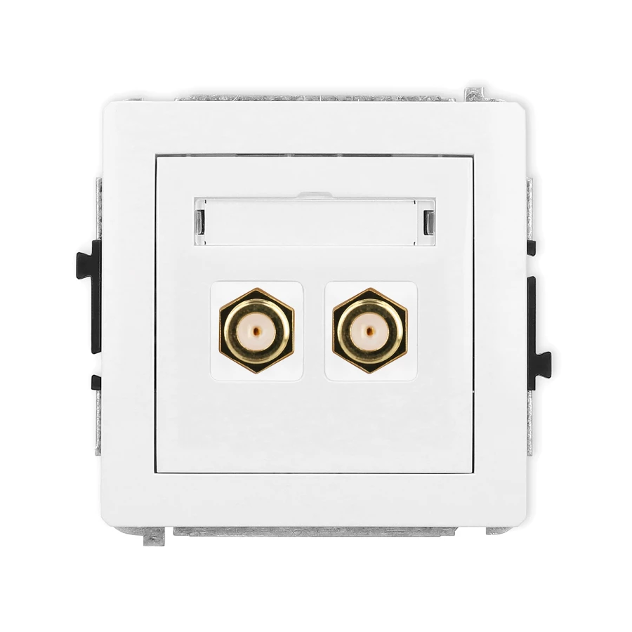 DECO Gniazdo antenowe podwójnego typu F (SAT) pozłacany biały DGF-2.1