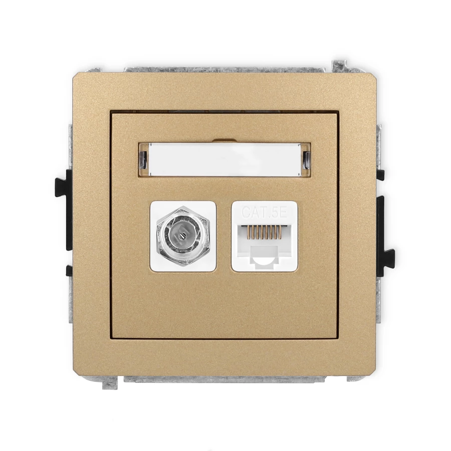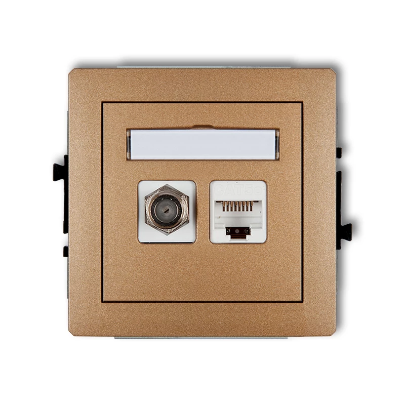DECO Gniazdo antenowe pojedyncze typu F (SAT) + gniazda komputerowe pojedyncze 1xRJ45 kat. 5e 8-stykowy złoty metalik 8DGFK-1