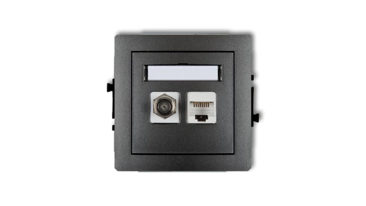DECO Gniazdo antenowe pojedyncze typu F (SAT) + gniazda komputerowe pojedyncze 1xRJ45 kat. 5e 8-stykowy grafitowy 11DGFK-1 yy