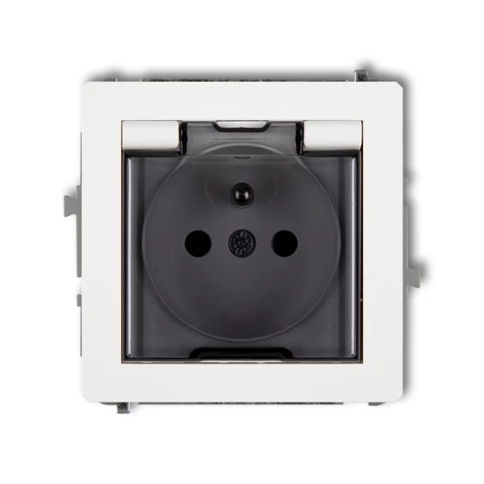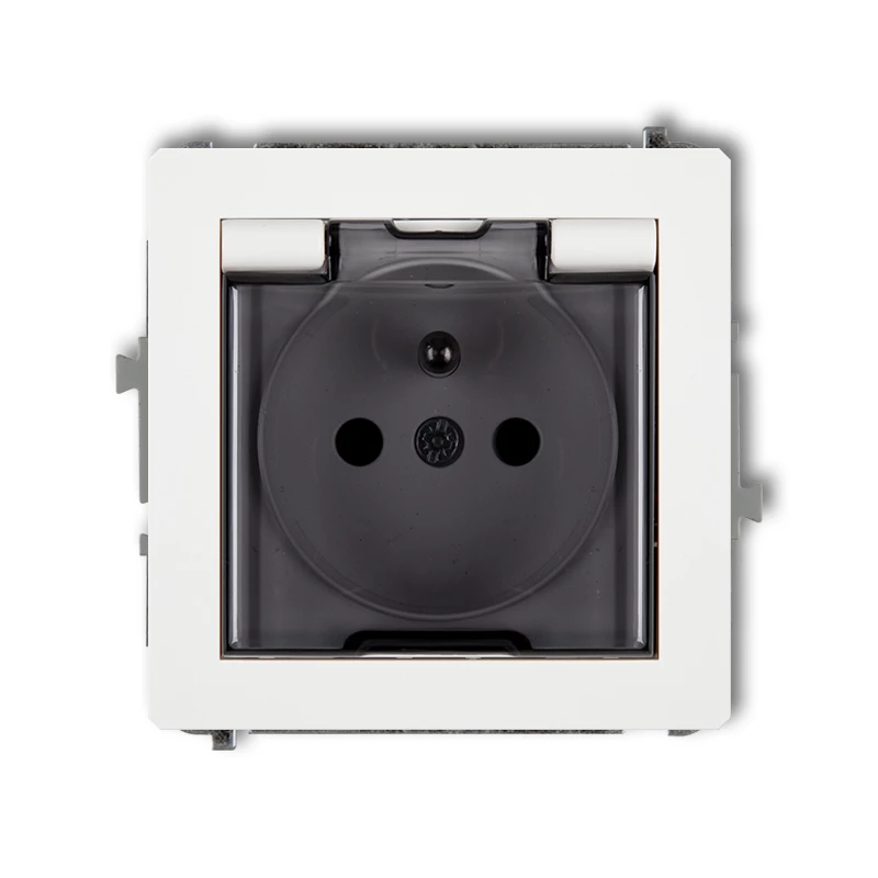 KARO MODUŁ BIAŁY GNIAZDO 1X Z/U Z KLAPKĄ DYMNĄ IP44 ZACISKI ŚRUBOWE 16A 250V