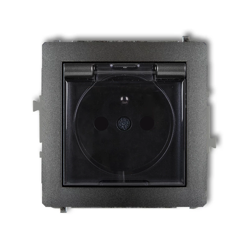 DECO Gniazdo bryzgoszczelne z/u (klapka dymna) grafitowy 11DGPB-1zdp