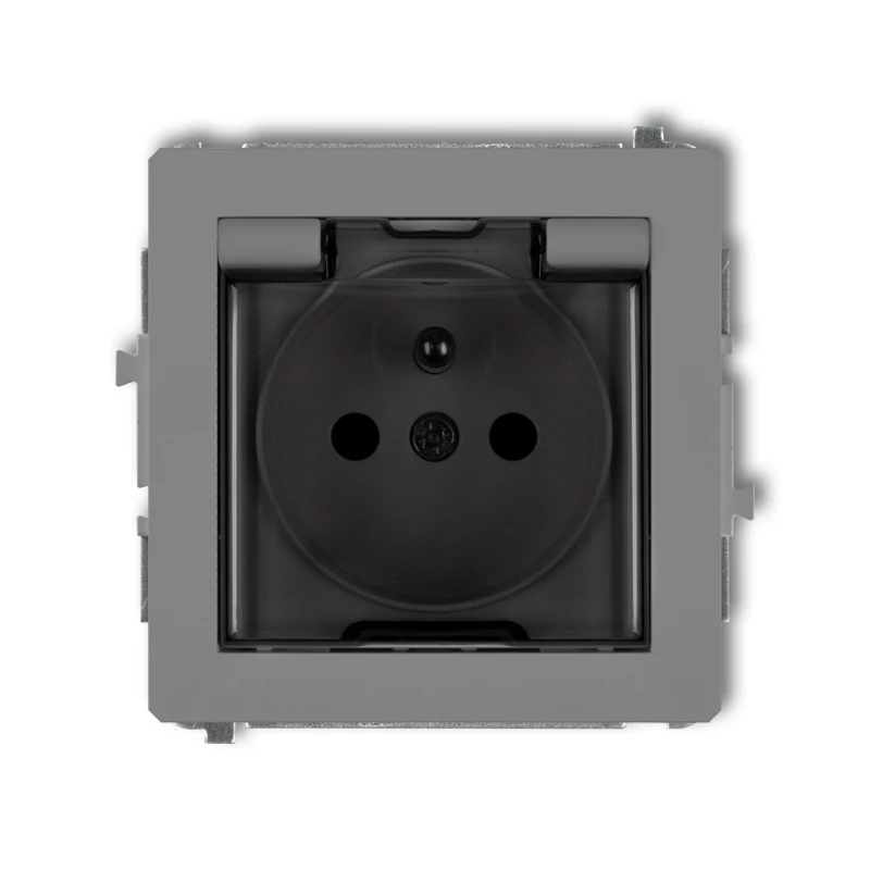 DECO Gniazdo bryzgoszczelne z/u (klapka dymna) szary mat 27DGPB-1zdp