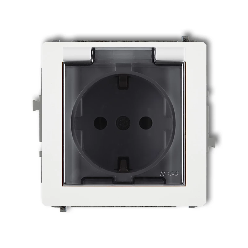 DECO Gniazdo bryzgoszczelne z/u SCHUKO (klapka dymna) biały DGPB-1sdp