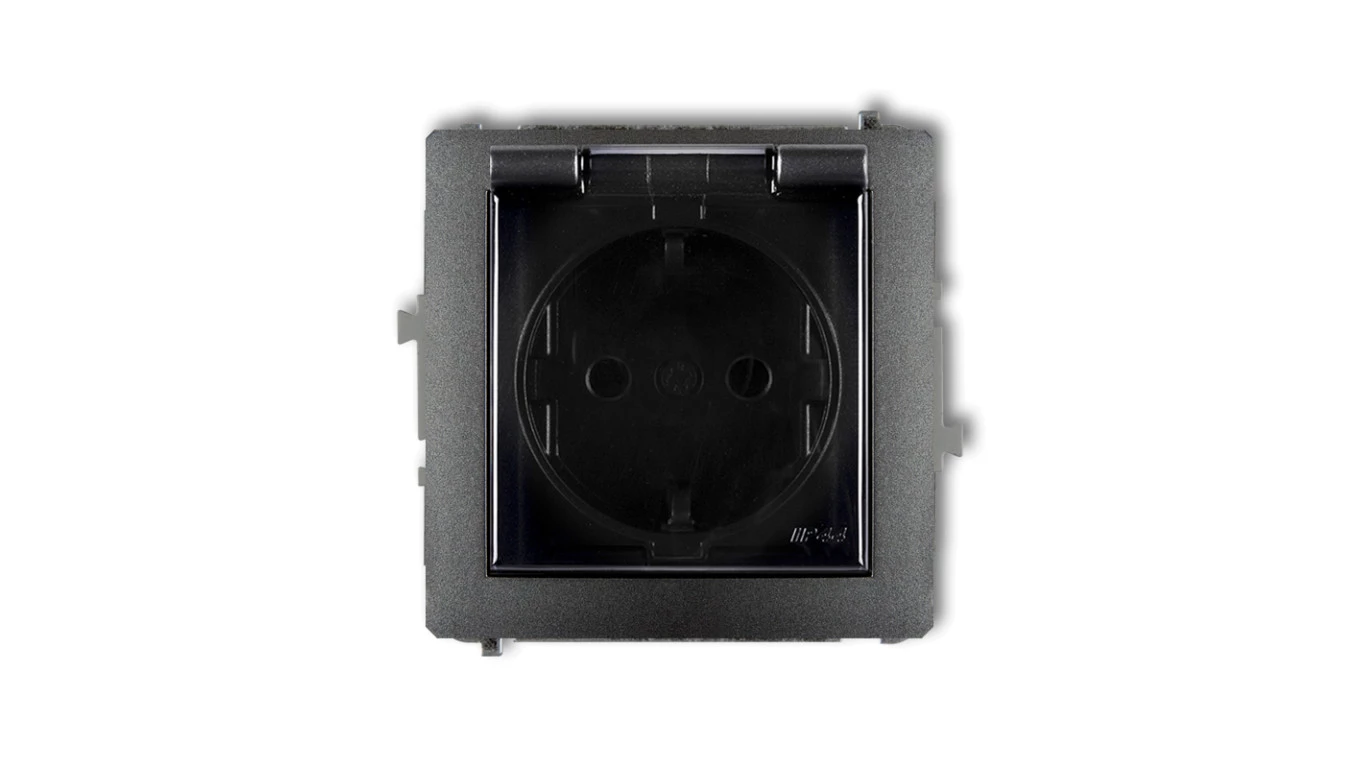 DECO Gniazdo bryzgoszczelne z/u SCHUKO (klapka dymna) grafitowy 11DGPB-1sdp