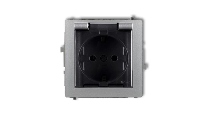 DECO Gniazdo bryzgoszczelne z/u SCHUKO (klapka dymna) srebrny metalik 7DGPB-1sdp