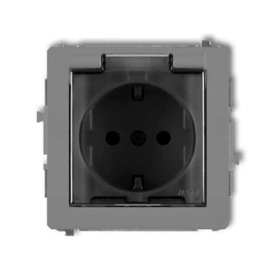 DECO Gniazdo bryzgoszczelne z/u SCHUKO (klapka dymna) szary mat 27DGPB-1sdp