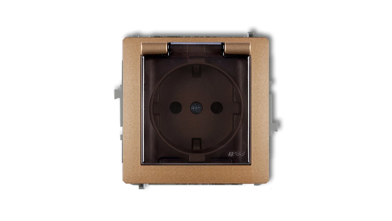 DECO Gniazdo bryzgoszczelne z/u SCHUKO (klapka dymna) złoty metalik 8DGPB-1sdp