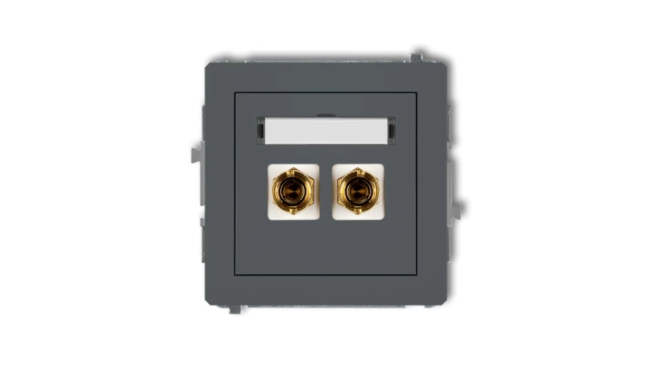 DECO Gniazdo głośnikowe pojedyncze (typu banan - czerwony i czarny, pozłacany, 4 mm2, skręcany) grafitowy mat 28DGG-4