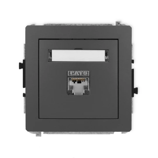 DECO Gniazdo komputerowe pojedyncze 1xRJ45, kat. 5e, ekranowane, 8-stykowy grafitowy mat 28DGK-1e