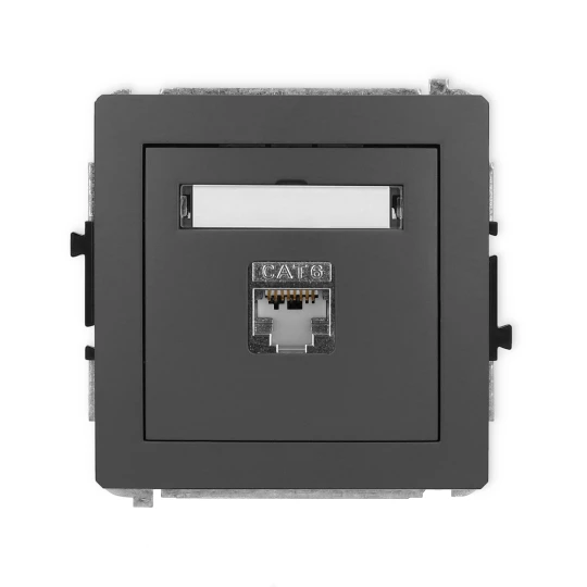 DECO Gniazdo komputerowe pojedyncze 1xRJ45, kat. 6, ekranowane, 8-stykowy grafitowy mat 28DGK-5