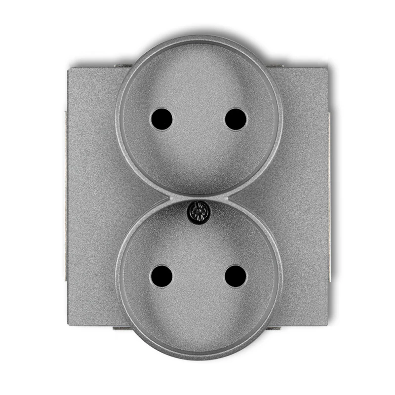 DECO Gniazdo podwójne b/u srebrny metalik 7DGPR-2p