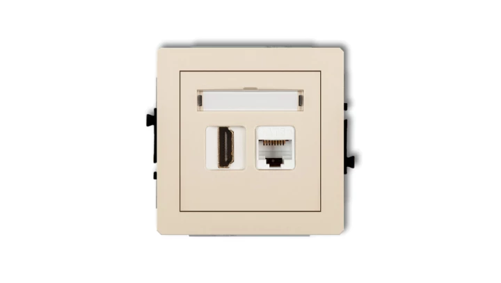 DECO Gniazdo pojedyncze HDMI + Gniazdo komputerowe pojedyncze 1xRJ45, kat. 5e, 8-stykowy beżowy 1DGHK